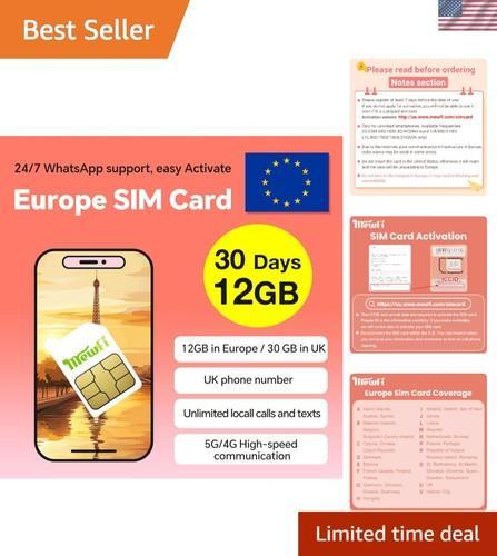 Prepaid 30-Day UK 30GB and 12GB SIM Card - Easy Activation, 72...