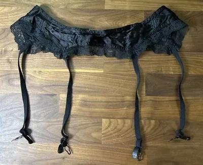 Simone Vintage XL Black Acetate Lace 4 Garter Belt USA Made 30”...