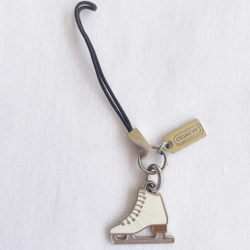 Coach Ice Skate Charm White Enamel Leather Strap Bag Keychain...