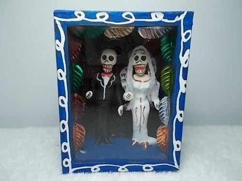 Day Of The Dead Skeletons Wedding Couple Shadow Box Mexican...