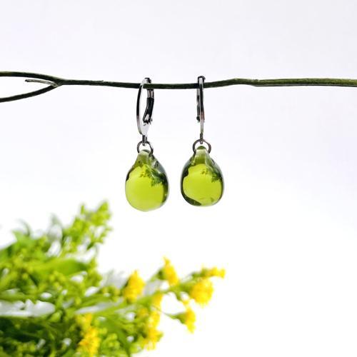 Šperk z pravého českého skla - Náušnice Mechový háj