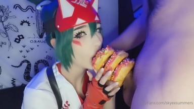Cute petite cosplayer slurps on a big cock Skye Summers leak...