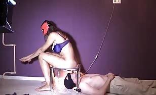 Stocking mistress pegs fishnet crossdresser slave deep in the...