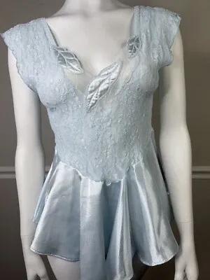 Vintage 1980s Cinema Etoile Blue Lace Slippery Satin Chemise...