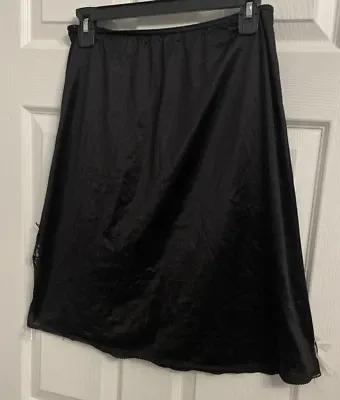 JC PENNEY Silky Half Slip Black Size Large Side Slit Lace Trim...