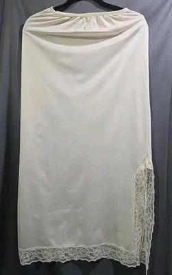 Vintage Nylon Half Slip Formal Length Lace Slit Ivory Waist...