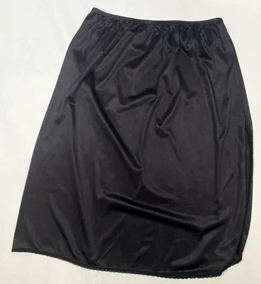 Vintage Black Half Slip SIZE XL long length 28" slit VASSARETTE...