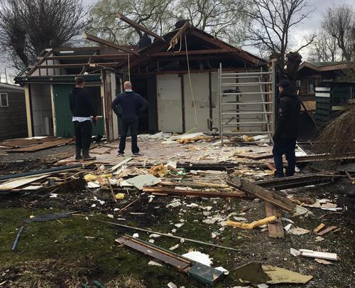 Sloop gestart van vervallen loodsen langs Hoge Rijndijk in...