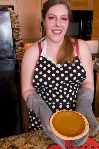 Slutty housewife Lana Del Lust cooking in the kitchen in a...