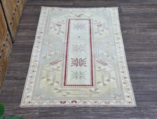 3x5 Vintage Turkish Rug, Small Oushak in Beige Blue Red...