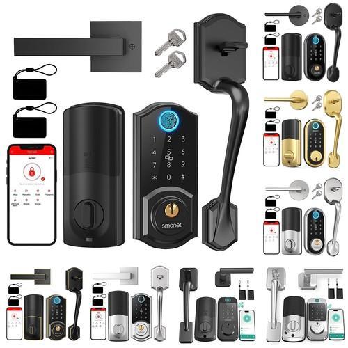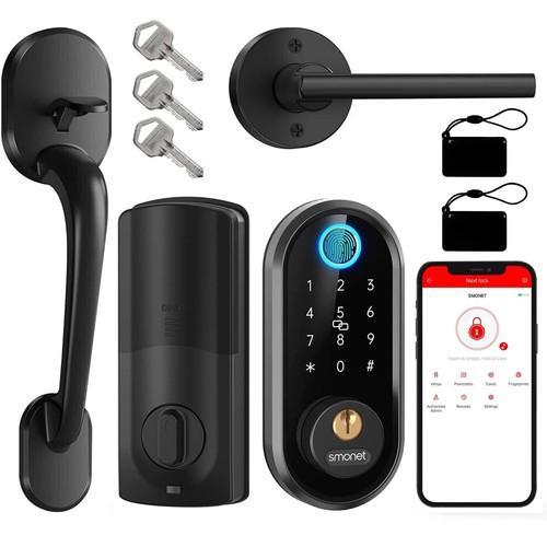 SMONET Smart Front Door Lock Set with Handle Fingerprint...