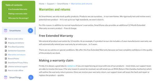 Warranties and returns | SmartHome