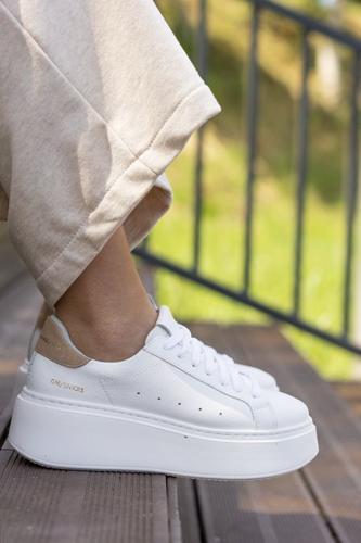 Białe sneakersy z tylnikiem cappuccino | Gianmarko
