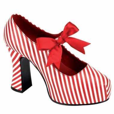 Rood wit gestreepte pumps | Snoep-winkel.nl