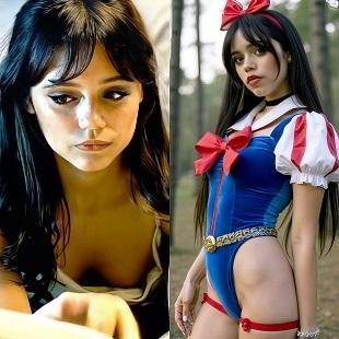 Jenna Ortega Deep Cleavage Outtake And Naughty Snow White Cosplay