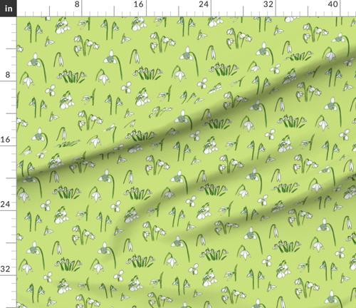 Snowdrop Varieties (green tiny) Fabric | Spoonflower