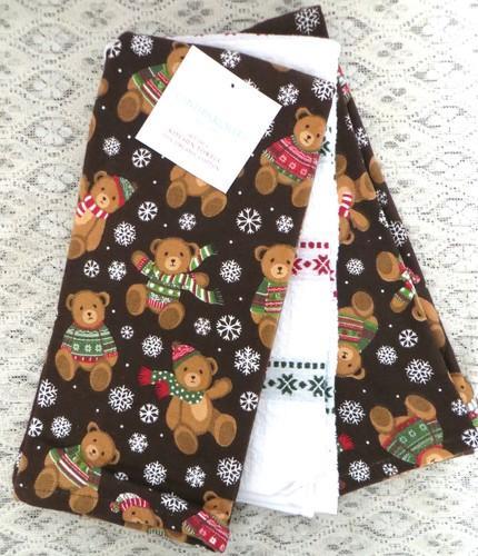 3 KItchen Towels Holiday Teddy Bears Snowflakes Cynthia Rowley...