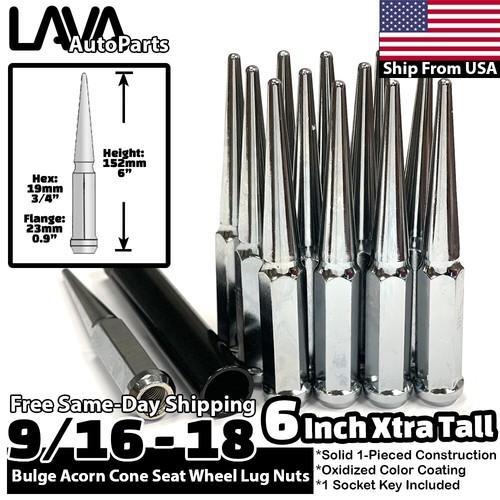 32x 6" Chrome 9/16-18 Spike Lug Nuts +Socket Fit 1994-2011...