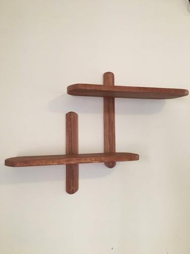 Mid-century style 2-tier wall shelf - handmade solid wood