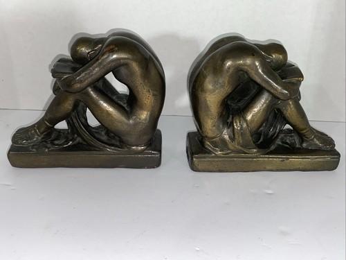 Art Deco Bookends Figural Male Bronze Clad Peter Manfredi...