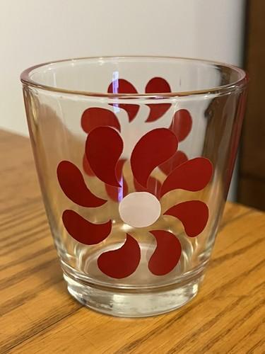 Vtg 50's Hazel Atlas Sour Cream Glass Tumbler Red White Daisy...