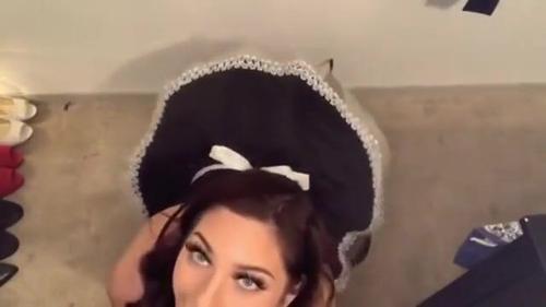 Splendid brunette black dick worship sucking the monster penis