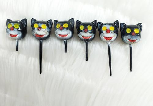 6 Vintage Halloween Spooky Black Cat Plastic Cupcake Party...