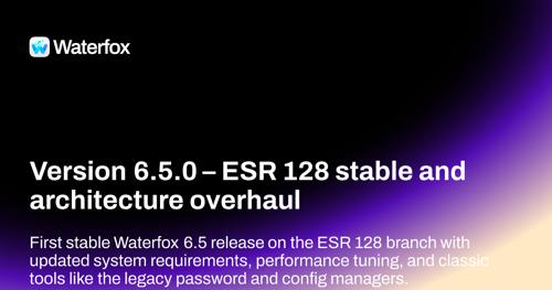 6.5.0 - ESR 128 stable and architecture overhaul - Waterfox...