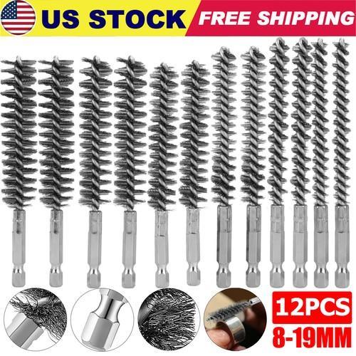12PCS Stainless Steel Bore Brush Wire Brush 1/4" Shank for...