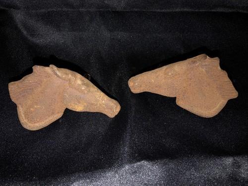 Vintage Lot of 2 Cast Iron Horse Head Stallion Equestrian...