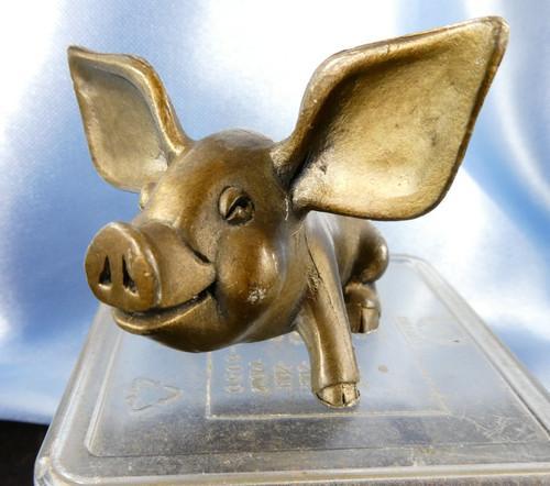 Vintage Brass Pig Figurine HUGE EARS Hudson New York Stamped...