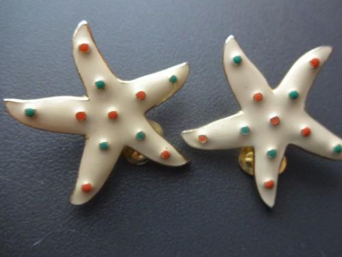 Vtg Sea Star Fish Starfish Clip On Earrings Gold Tone Cream...