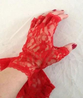 pretty RED lace fingerless glove sexy victoran goth saloon...