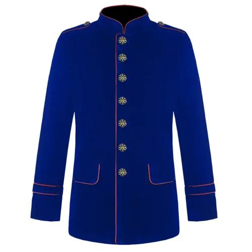 Gothic Steampunk Blue Military Jacket Men's Army Officers Coat