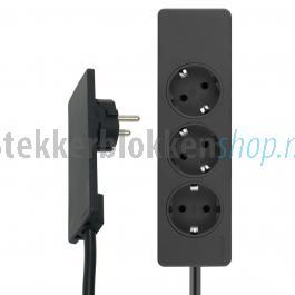 Zwarte stekkerdoos Thebo rechthoekig 3 stopcontacten...