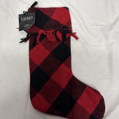 RALPH LAUREN Buffalo Plaid CHRISTMAS STOCKING Red Black Check...