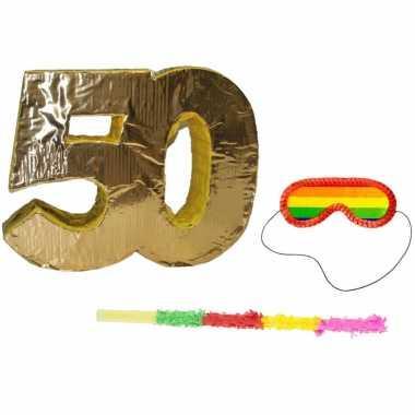 Pinata goud 50 jaar leeftijd + stok + blinddoek | Blinddoeken.nl