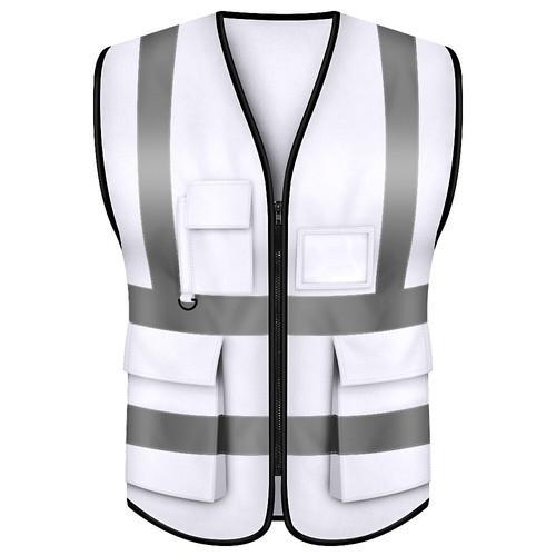 High Visibility White Safety Vest With 5 Pockets Reflective...