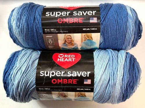 2 Skeins Red Heart Super Saver OMBRE True Blue Striping Medium...