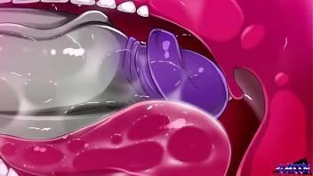 Blonde girl sucks huge cock of cartoon Hulk