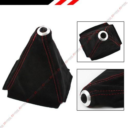 UNIVERSAL BLACK SUEDE MANUAL SHIFT SHIFTER BOOT COVER WITH RED...
