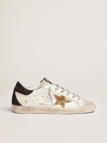 Women's Super-Star LTD in black leather with gold leather star...