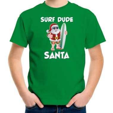 Surf dude santa fun kerstshirt / outfit groen voor kinderen...