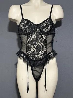 Juliara Lingerie Bodysuit W/Suspenders Sz Large Black Lace...