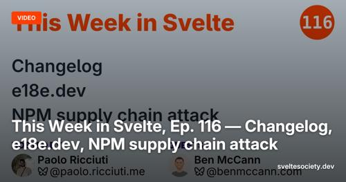 This Week in Svelte, Ep. 116 — Changelog, e18e.dev, NPM supply...