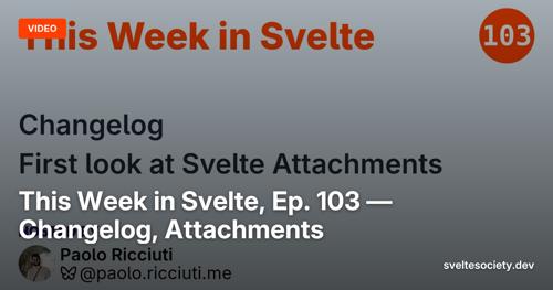 This Week in Svelte, Ep. 103 — Changelog, Attachments - Svelte...