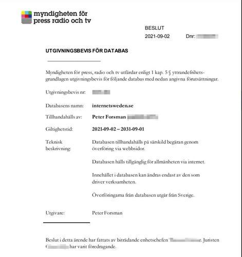 Utgivningsbevis - Internet Sweden - Värnar internet i Sverige...