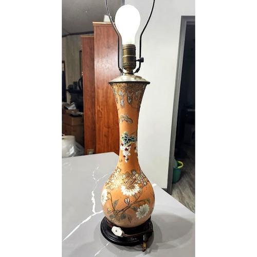 A Sweet Marbro Japanese Satsuma Peach Porcelain Table Lamp...
