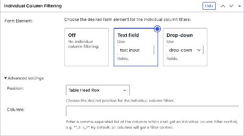 Individual Column Filtering · TablePress