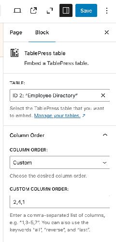 Column Order · TablePress